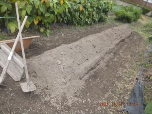 昨日からの続き作業・・ 16時より作業開始して1時間で第2ホウレンソウ畝を完成させました!