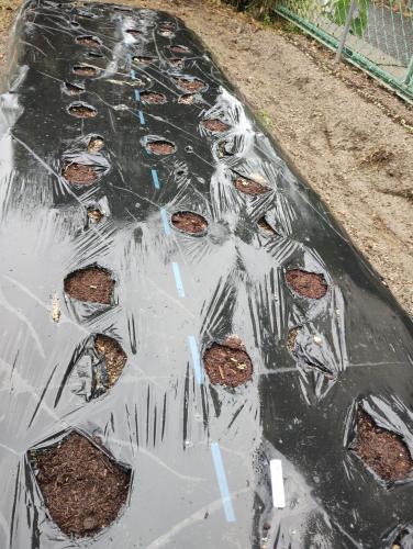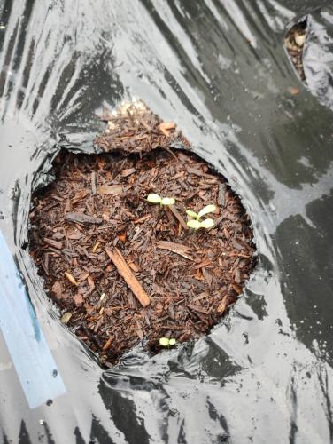 ロメインレタスが発芽しました。防虫ネットを設置しました。