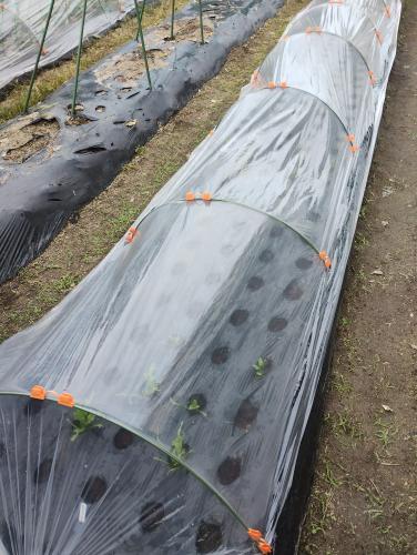ナチュール(ほうれん草)を欠株部に追い蒔きし、ビニールトンネルを設置しました。