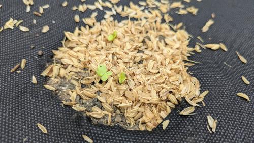 少々古くても発芽しました この小さな芽が愛おしい。。
