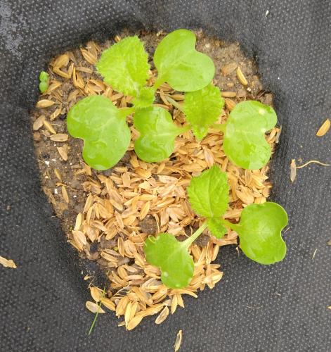 無事 白菜も発芽して 本葉も出てきたよ 1穴に5-6個発芽してるとこもある(^_^;) 間引きして半分にしましょう 早く大きくしたいから1個にしてもいいかもだけど まだまだバッタが飛んでたりチョウチョも飛んでるしね もう少し大きくなるまで1穴2-3個で