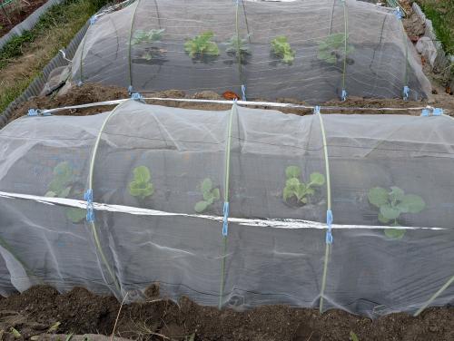 2つ目の畝に極早生種2株 将軍とグリーンキッド 中生1株 たしか湖月 あとミニレタスのマノア2株を定植