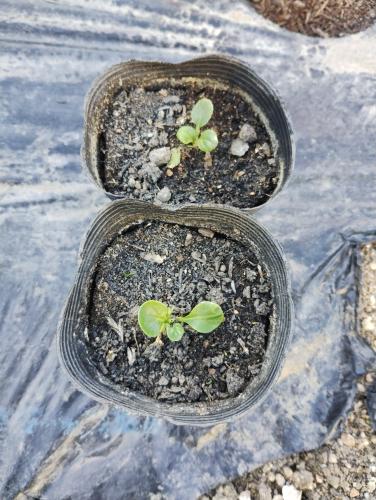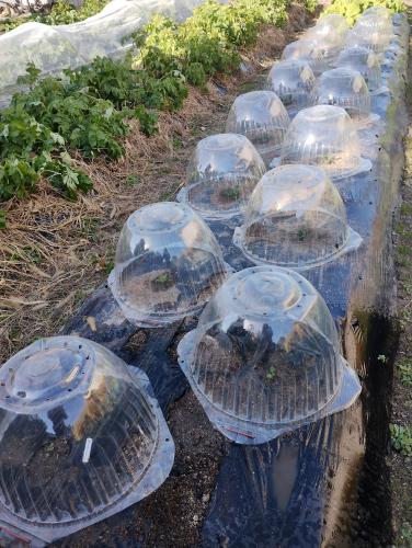 タアサイを定植(株間60cm、2条千鳥)し、苗ガードを設置しました。