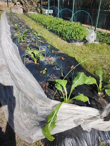天王寺蕪を間引き、移植しました。