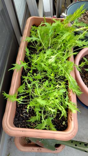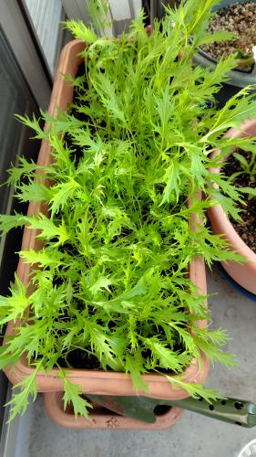 どっちゃり種をばらまいたから 抜いても抜いても たくさん生えてる。 今日も間引いて サラダに混ぜた。 いつだったか お正月のお雑煮に間に合わなかったことがあるけど あれって種まきが遅すぎたってことかな。 それとも寒すぎて育たなかったのかな。 今年は大きな株になりそう。 シャリシャリお雑煮に入れて食べちゃうよ。