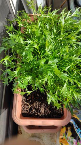 大きくなった水菜 間引いては食べ 間引いては食べ もう生食では硬くなってきた。 大きな株を根もとからハサミで切って間引き あと8株になった。 今月中に3株まで間引こうと思う。 サラダに鍋に雑煮に 役に立つ水菜。 今年の秋も絶対に種をばらまこう! わざわざお店で買う野菜ではないので こんなに水菜を食べる人生は想定外。
