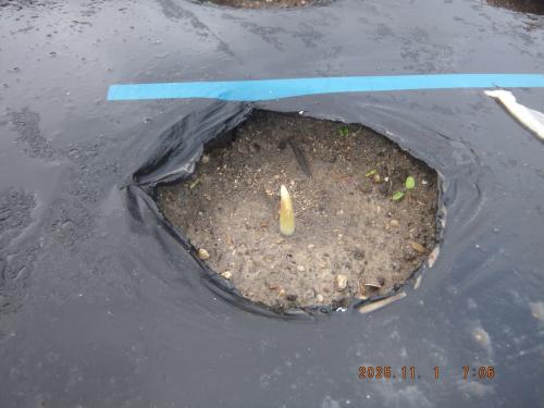 追加植え付け7日目で2期目ニンニクの発芽開始を確認しました!