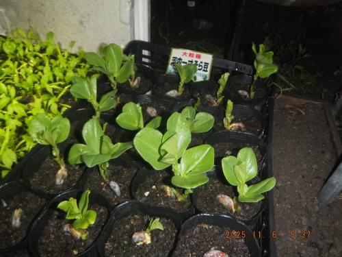 種まき後25日でソラマメ苗の植え付け可能状態になりました!