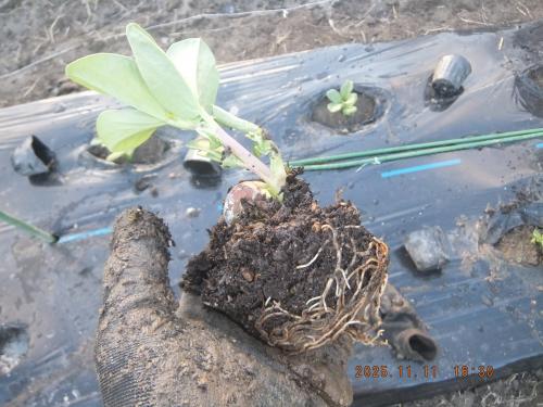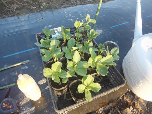 育苗が完了しましたので 15ポットソラマメ苗を植え付けしました!