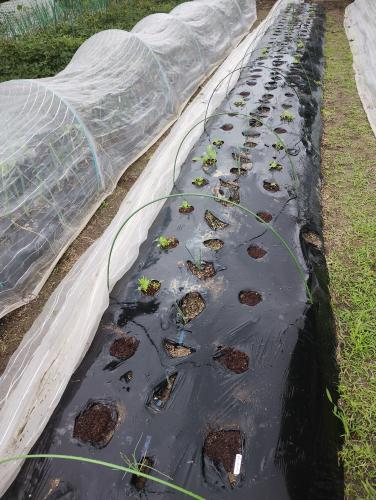 スーパーレッド(サニーレタス)を播種(株間30cm、2条、点蒔き)しました。