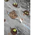 ゆたか二号(小かぶ)が発芽しました。不織布を撤去し、防虫ネットを設置しました。