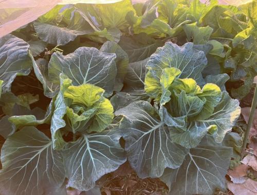 今朝の寒さで霜がおり、キャベツも真っ白になっていました。 もう少ししっかり保温しないと厳しそう。