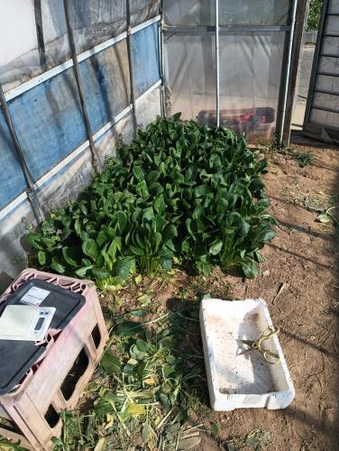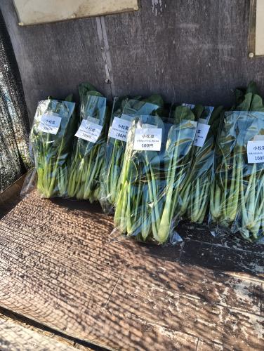 小松菜の量も減ってきました 正月明けから売れ行きが悪い 寒いので散歩する人がいないので 袋に詰めた小松菜も残ってしまう 誰か買っておくれ!