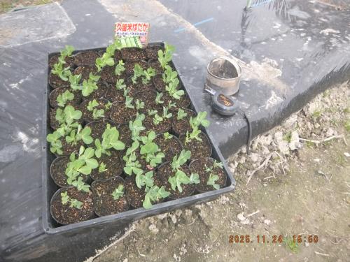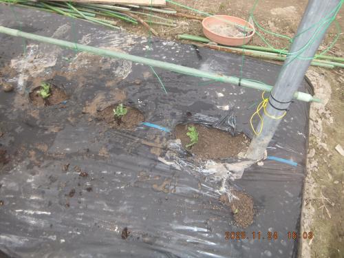 実エンドウ苗より植え付け可能状態な物を選び 整備済み畝に植え付け完了しました!