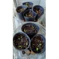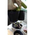 左にスナップ4ポット 右は絹さや3ポット