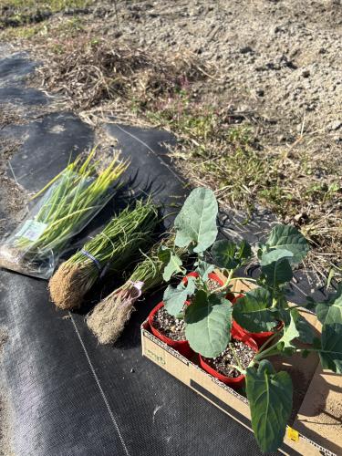 長ネギ(石倉1本ネギ)・・・50本 タマネギ(ネオアース)・・・100本 タマネギ(ケルたまルビー)・・・50本 ブロッコリー(チャレンジャー)・・・4株