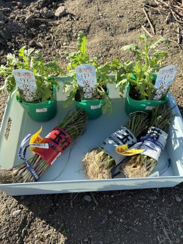 シュンギク(中葉春菊)・・・3株 タマネギ(ネオアース)・・・50本✖️2 タマネギ(くれない)・・・50本