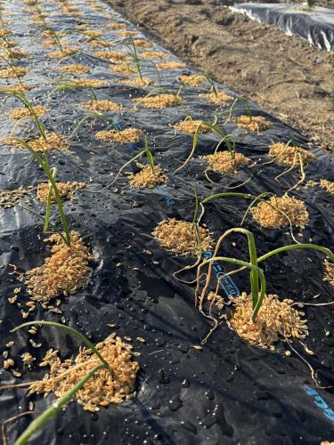 植え穴にもみ殻をまきました。 予備の7本じゃ足りないくらいあちこち苗が消滅…(O_O)