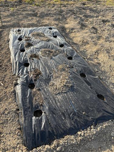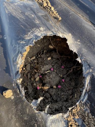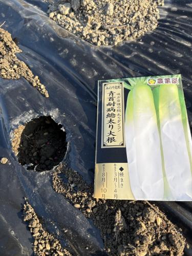 大根の種まきをしました。 1穴6粒。 30㌢間隔✖️2列