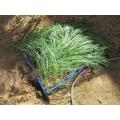 花の終わったサフランの葉に少しでも日が当たるように、風で一方向になびいた葉を広げ、光を当てる