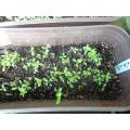 食用花、播種12日目の様子。徒長気味なので、早くベランダに出したいです。