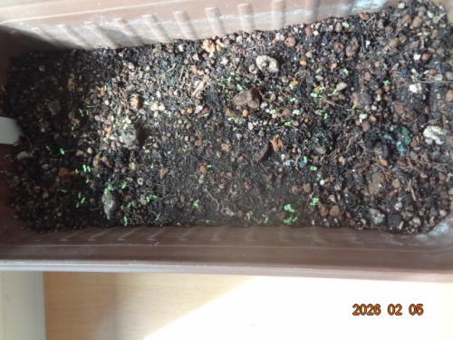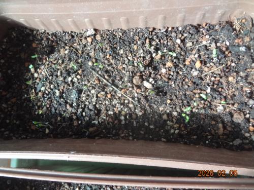 食用花、播種8日目の様子。3種類、予定通り発芽しました。