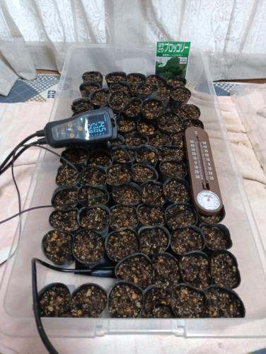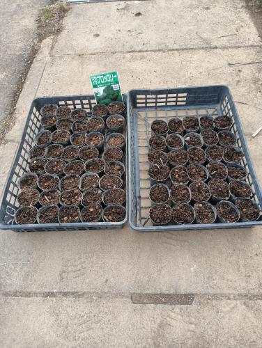 2月ですが今日は気温が上がってイイ感じです そんな時は種蒔きですね ブロッコリーって人気商品なんで春蒔きです 小さいビニポット70個蒔きました これを持ち帰りホカホカの23度前後で育苗 たぶん、5日で目覚めるでしょう
