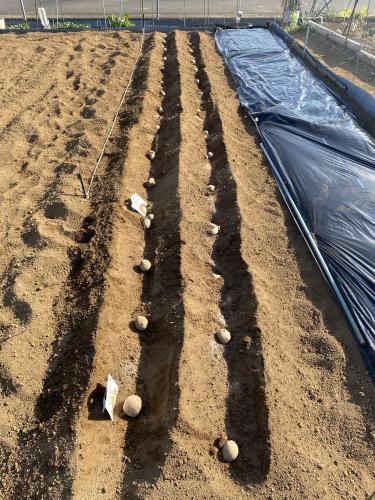 植え付けは頑張ったけど、黒マルチは張る気にはなりませんでした。