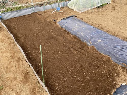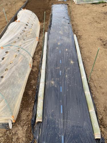 手前に人参畝あり、後方に「タワラワイス」5×2
