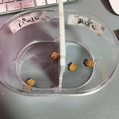 水につけるとよいらしいんだけど、緑色のあばしゴーヤと白いパールゴーヤ、タネの大きさも色もちがうとは言え混ざって分かんなくなりそうじゃない??