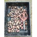 グランドペチカ(ジャガイモ)の芽出しのために浴光催芽を始めました。 基肥(草木灰、米糠)、耕耘、畝立てをしました。