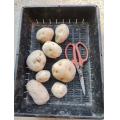 男爵(ジャガイモ)の芽出しのために浴光催芽を始めました。 基肥(草木灰、米糠)、耕耘、畝立てをしました。