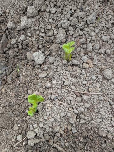 マルチをめくると 一部で芽を確認 もうしばらく マルチそっ閉じ