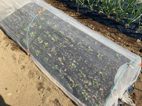 2/26播種の葉物系。先日ビニトン外したのだけど、まだ早かったかな。