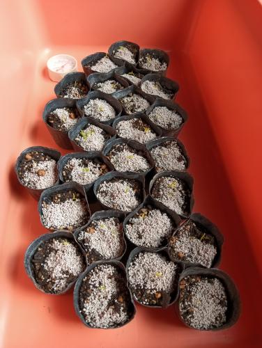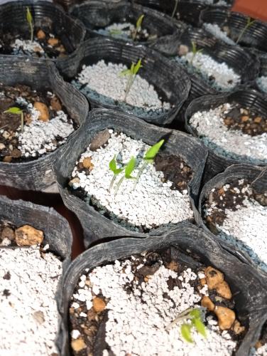 朝、育苗箱を覗いたら発芽していました 今日はお昼頃から晴れて気温が上がったので ベランダで日向ぼっこさせました 夕方から気温が下がるので部屋の中でぬくぬく 残りも明日大量発芽期待です