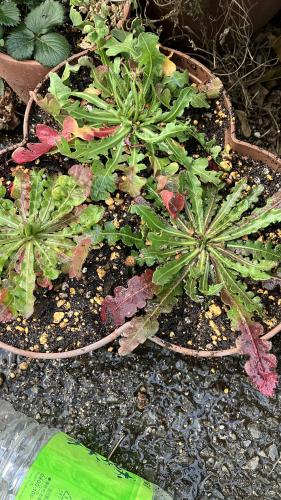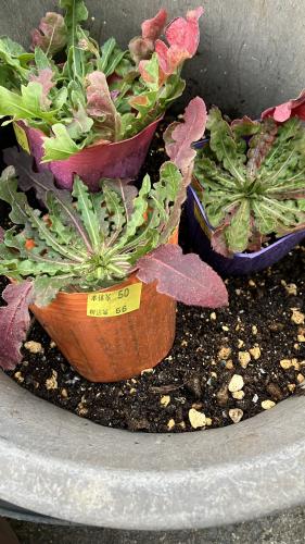近くの花屋で一苗50円で売られていたスターチス。3種(3色分)買ってきて植え替えた。