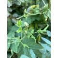 このラズベリーは基本的に秋は咲かないと考えている。でも若葉は出てきてよかった。古い葉はかなり多くがハダニにやられてるが、そうした葉は農薬の使用回数制限の関係で8月半ばからは放置したままとなった。残念だ。