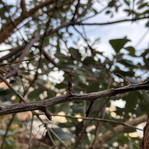 実生の豊水、今年も新芽は少ない。とにかく枝が増えない。とても調子が悪い。プランターの土も硬くて何もできないし、フェイジョアと一緒に植っている最悪の環境。 昨年はこれでよく収穫できたと思う。、